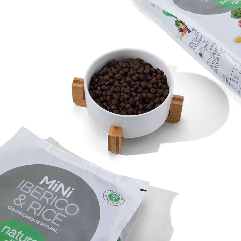 Natura Diet Ibérico and rice mini es un alimento completo, con ingredientes naturales, biológicamente adaptado a las necesidades reales de los perros adultos de tamaño pequeño.